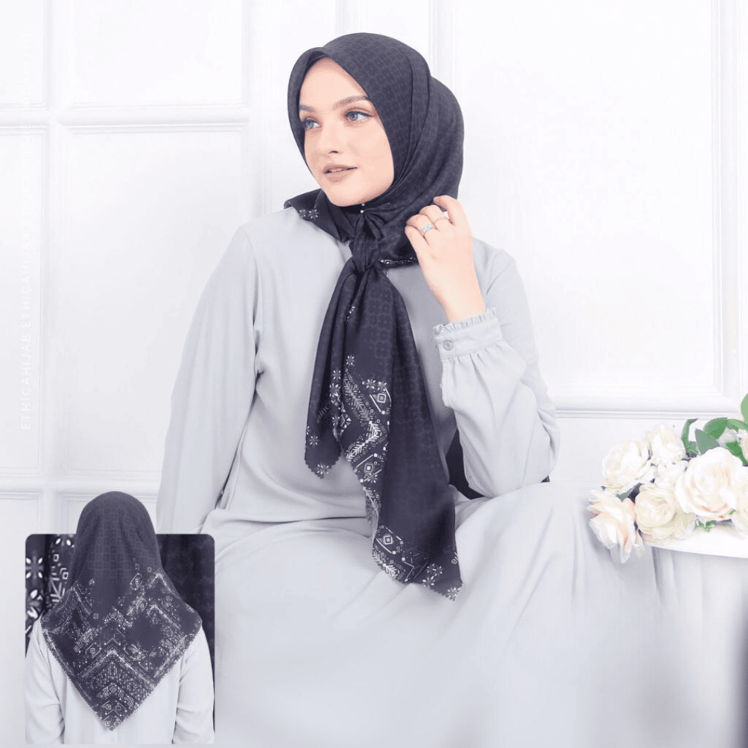 Hijab segiempat atau Hijab Square dari ethicahijab tersedia berbagai warna dan desain cantik nih