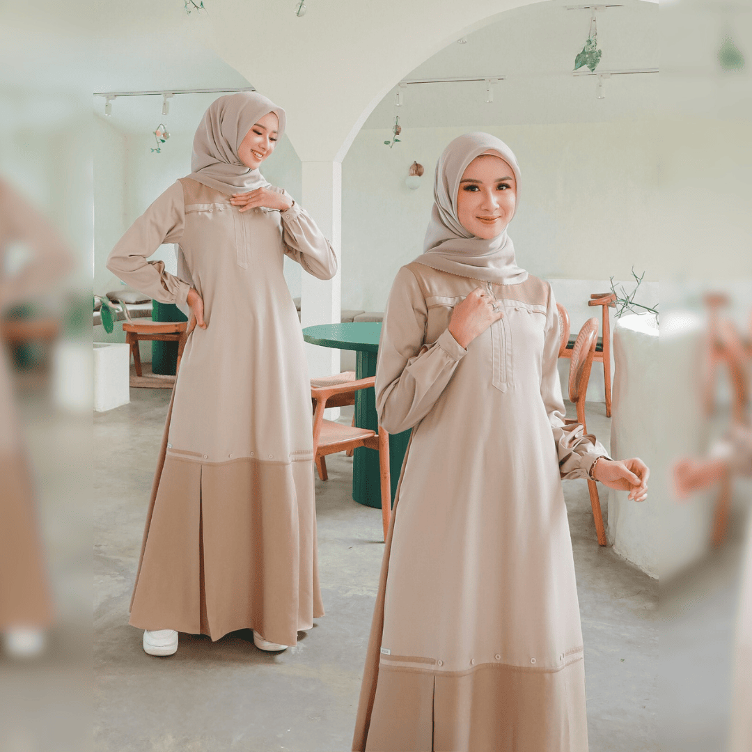 – Variasi kancing mati pada sisi depan atas dan bawah gamis