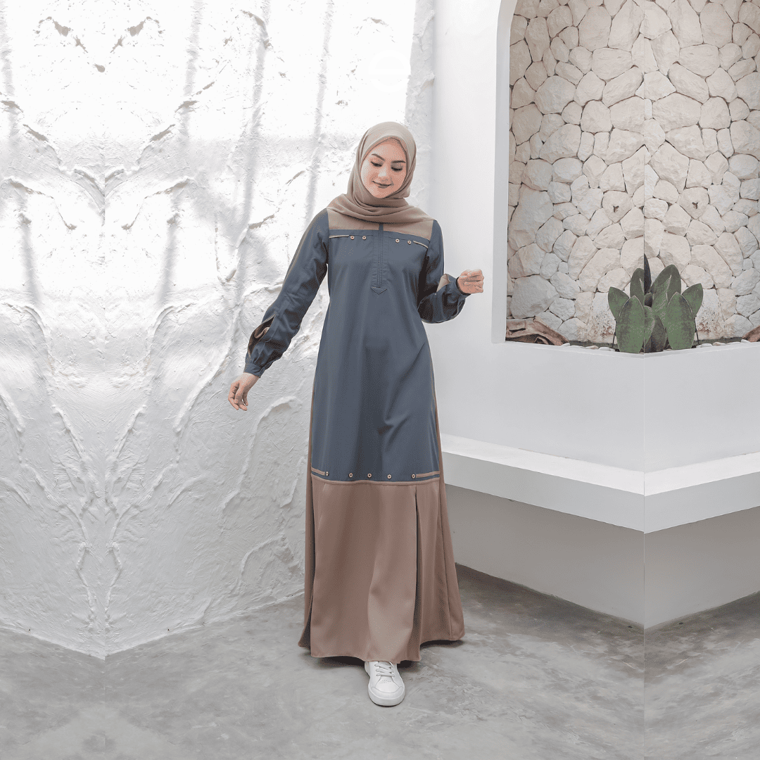 – Variasi kancing mati pada sisi depan atas dan bawah gamis