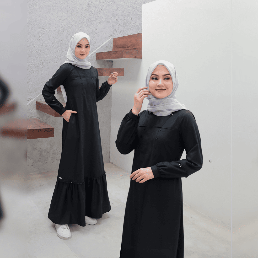 – Variasi kancing mati pada sisi depan atas dan bawah gamis