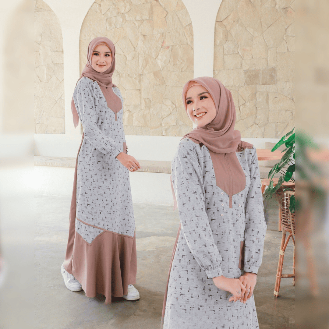 – Variasi kancing mati pada sisi kanan dan kiri pada bagian depan gamis