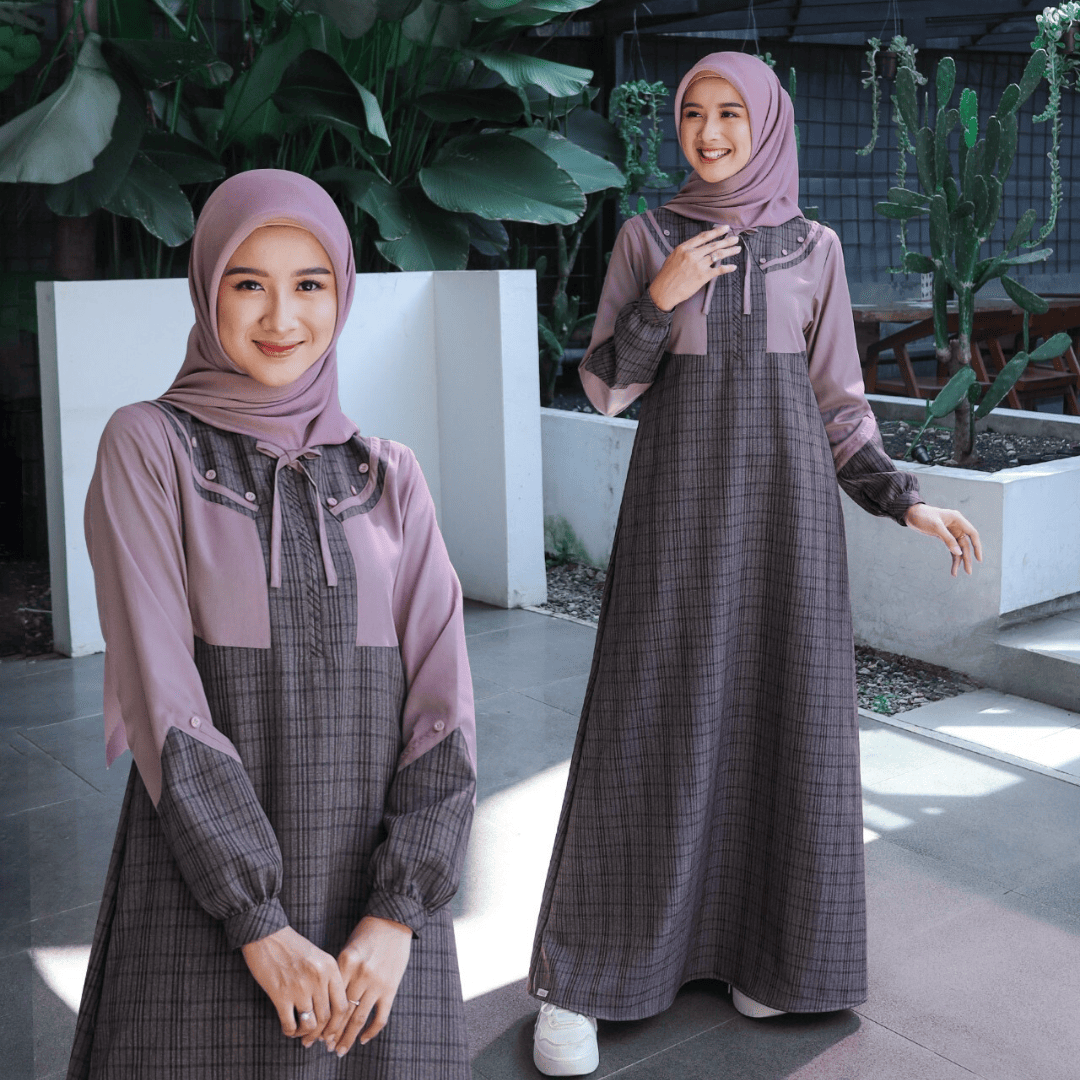 – Variasi motif kotak dipadu padankan dengan warna polos senada menambah kesan classy dan trendy