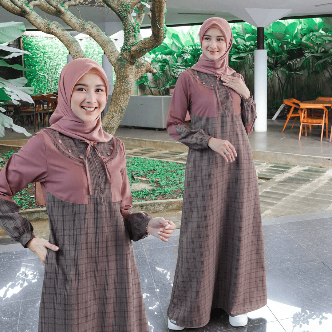 – Variasi motif kotak dipadu padankan dengan warna polos senada menambah kesan classy dan trendy