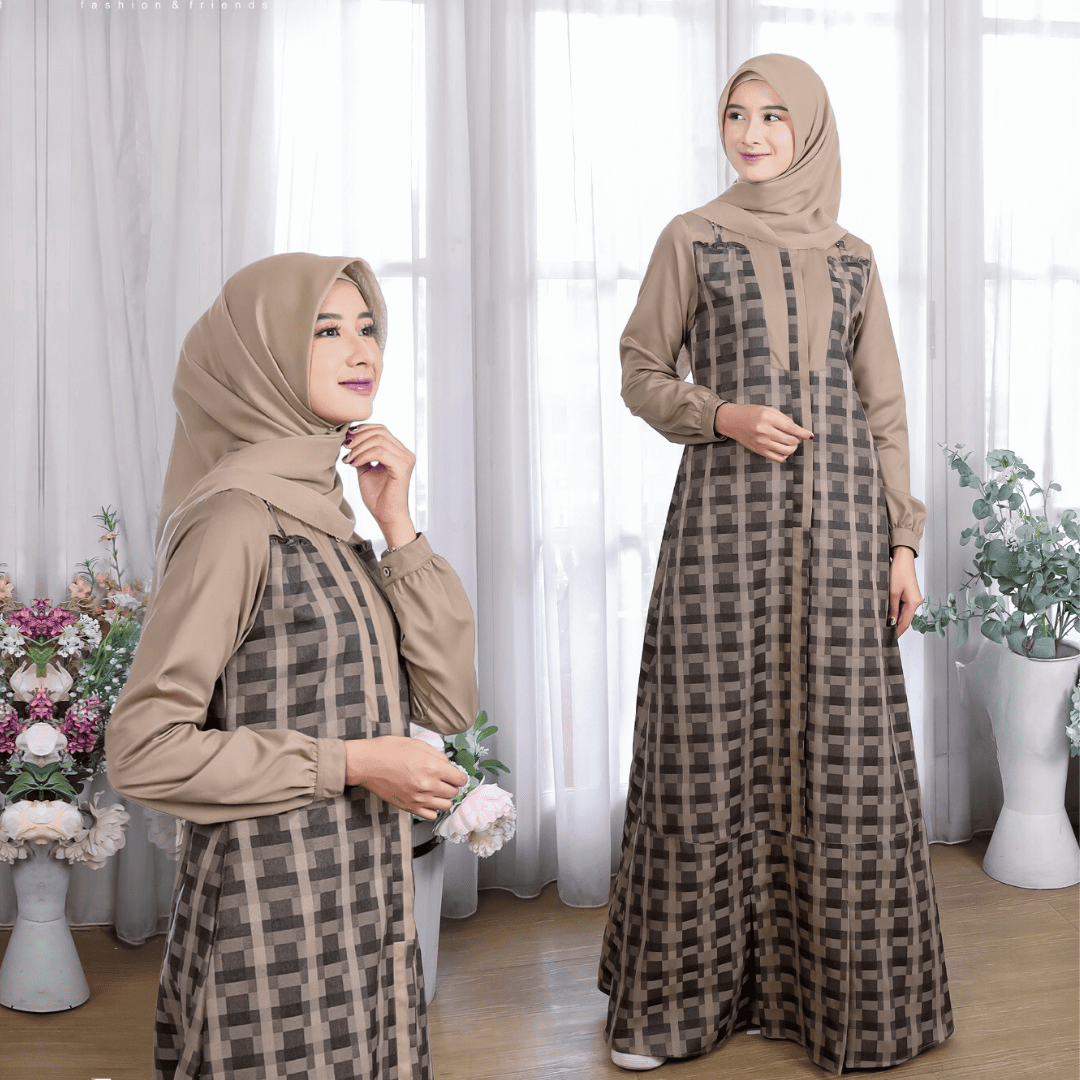 – Variasi motif kotak dipadu padankan dengan warna polos senada menambah kesan classy dan trendy