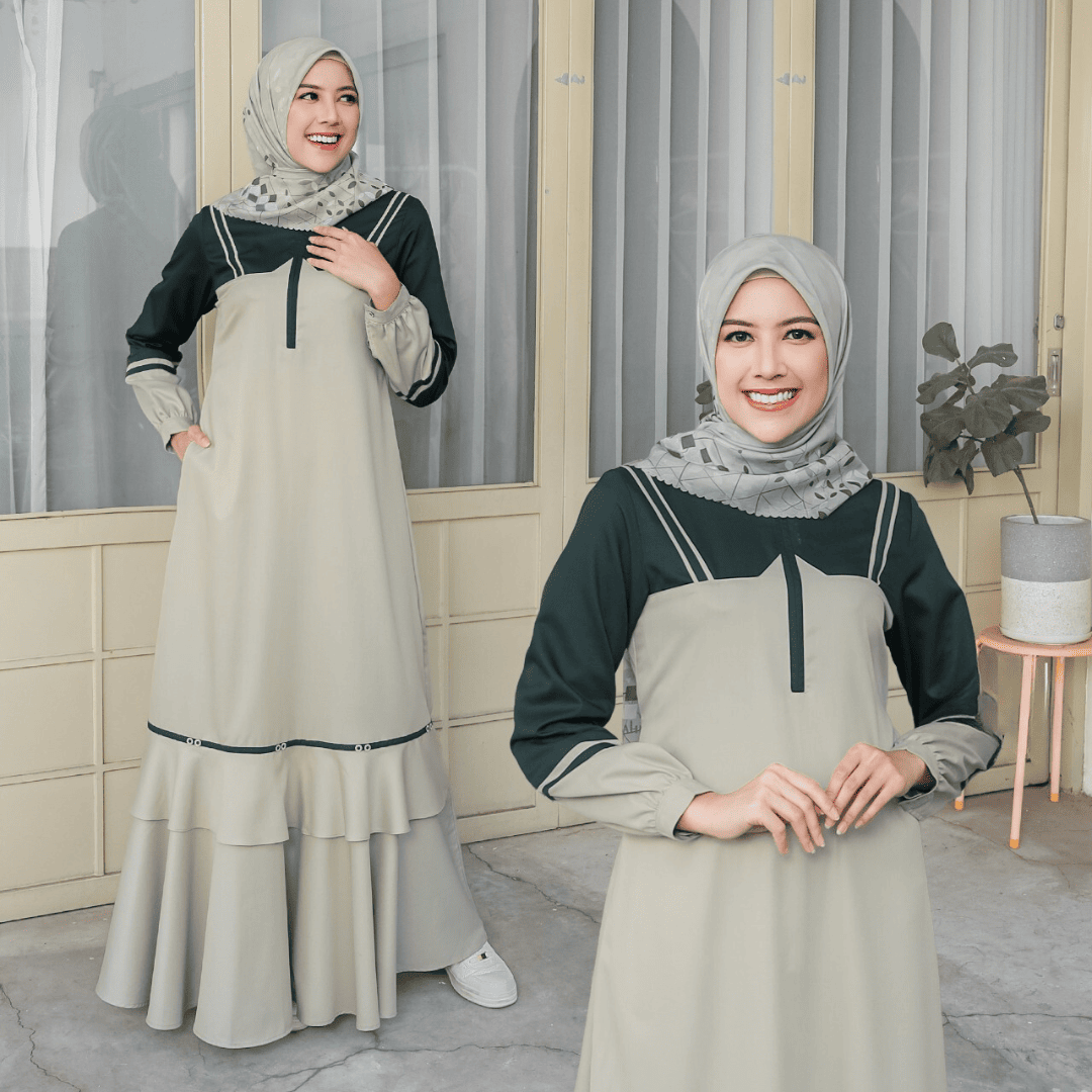 – Variasi kancing mati dan rempel dibagian bawah gamis