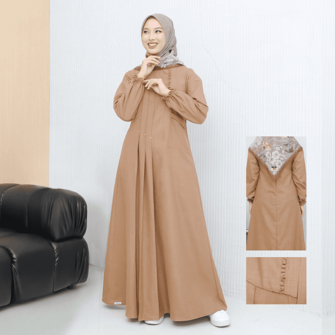 =>> PRODUCT DETAIL : – Bukaan depan menggunakan zipper – Variasi potongan dengan detail frill – Variasi ploi dengan detail tindis dan kancing – Variasi tali dengan detail kancing – Lengan menggunakan karet – Saku sembunyi di sisi kanan
