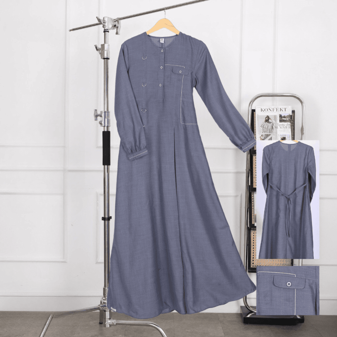 ๐ธ Variasi tutup saku pada dada kiri dengan detail kancing dan jahitan tindis