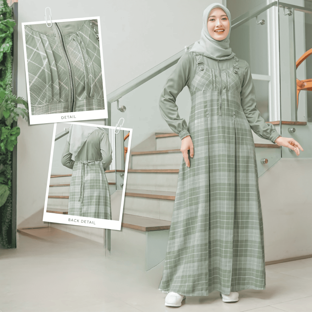 – Variasi kancing pengait dan gesper pada bagian bahu dan dada