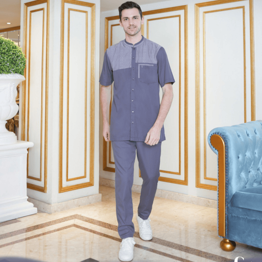 – Variasi potongan pada bagian dada dengan detail lis, ring dan kancing