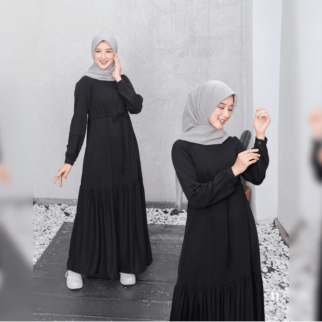 Detail Gamis : kancing di ujung lengan hidup untuk memudahkan kita berwudhu tentunya, bukaan berupa resleting depan untuk memudahkan ibu yang sedang dalam masa menyusui agar tidak ribet, terdapat saku dalam disamping kanan gamis, terdapat aksen semi rempel pada bagian bawah gamis, variasi serut dan tali pinggang pada bagian perut, bahan jatuh.