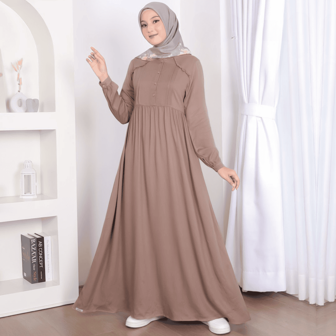 =>> PRODUCT DETAIL : – Bukaan depan menggunakan kancing – Variasi potongan lengkung dengan detail frill – Variasi opnaisel pada bagian dada – Potongan pinggang dengan kerut – Lengan menggunakan manset – Saku sembunyi di sisi kanan