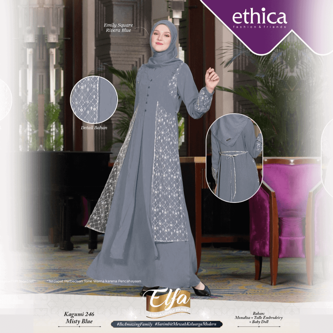 Busana Gamis Pesta Ethica warna MISTY BLUE.