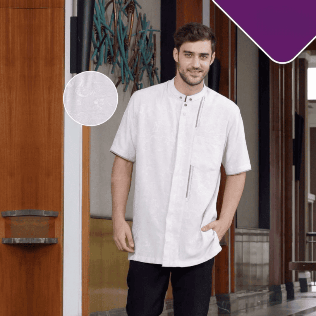 KAHFI 220 CRYSTAL PINK : LODIARZA + MONALISA. Kemeja lengan pendek, bukaan full kancing, dan terdapat saku di sebelah kiri.