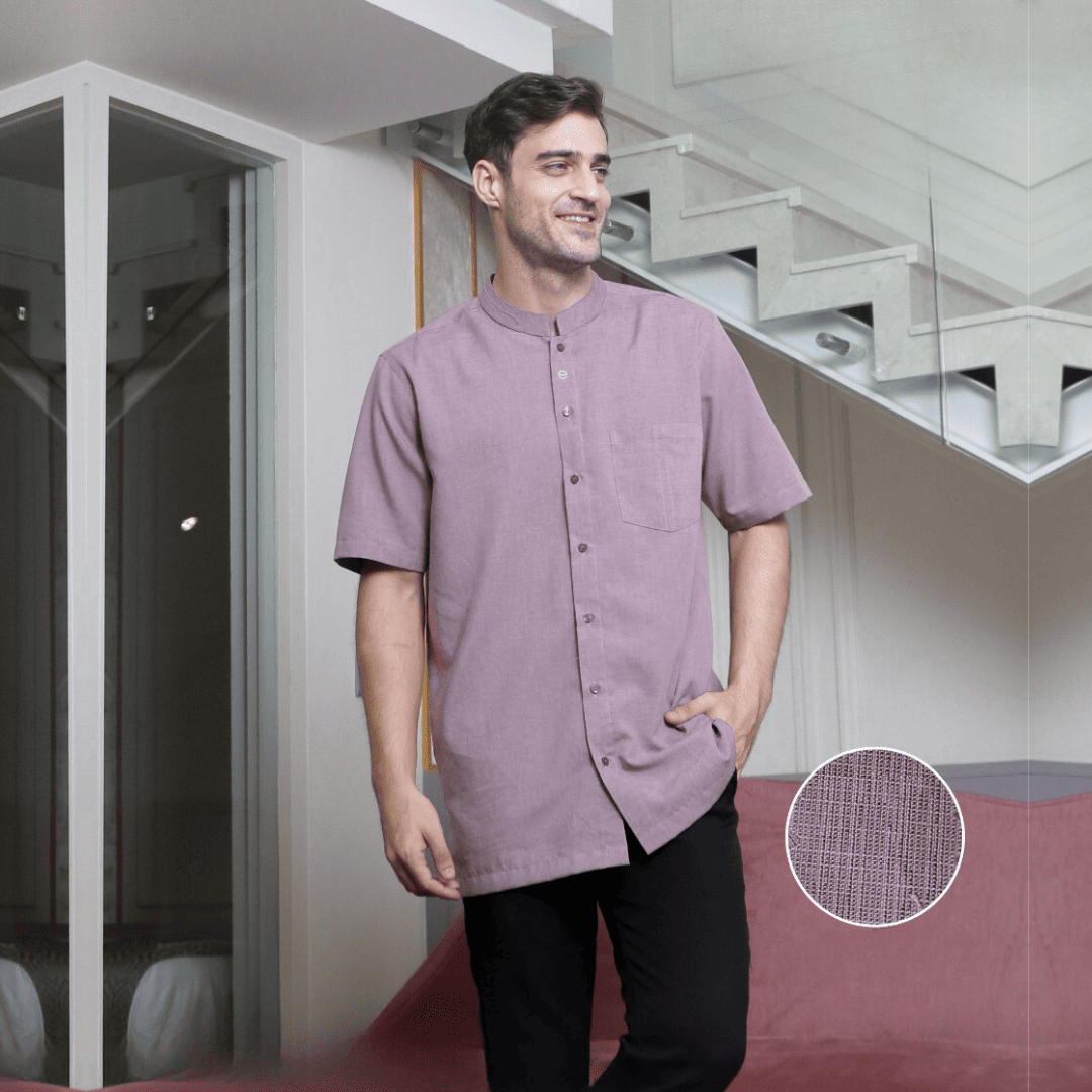 BAHAN : BRICE. Kemeja lengan pendek, bukaan full kancing, dan terdapat saku di sebelah kiri.