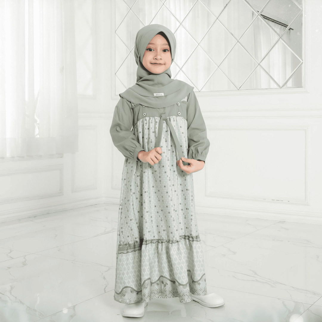 🌸 LADIVA KIDS 01 GREEN ZHEPHYR ( Gamis Anak )