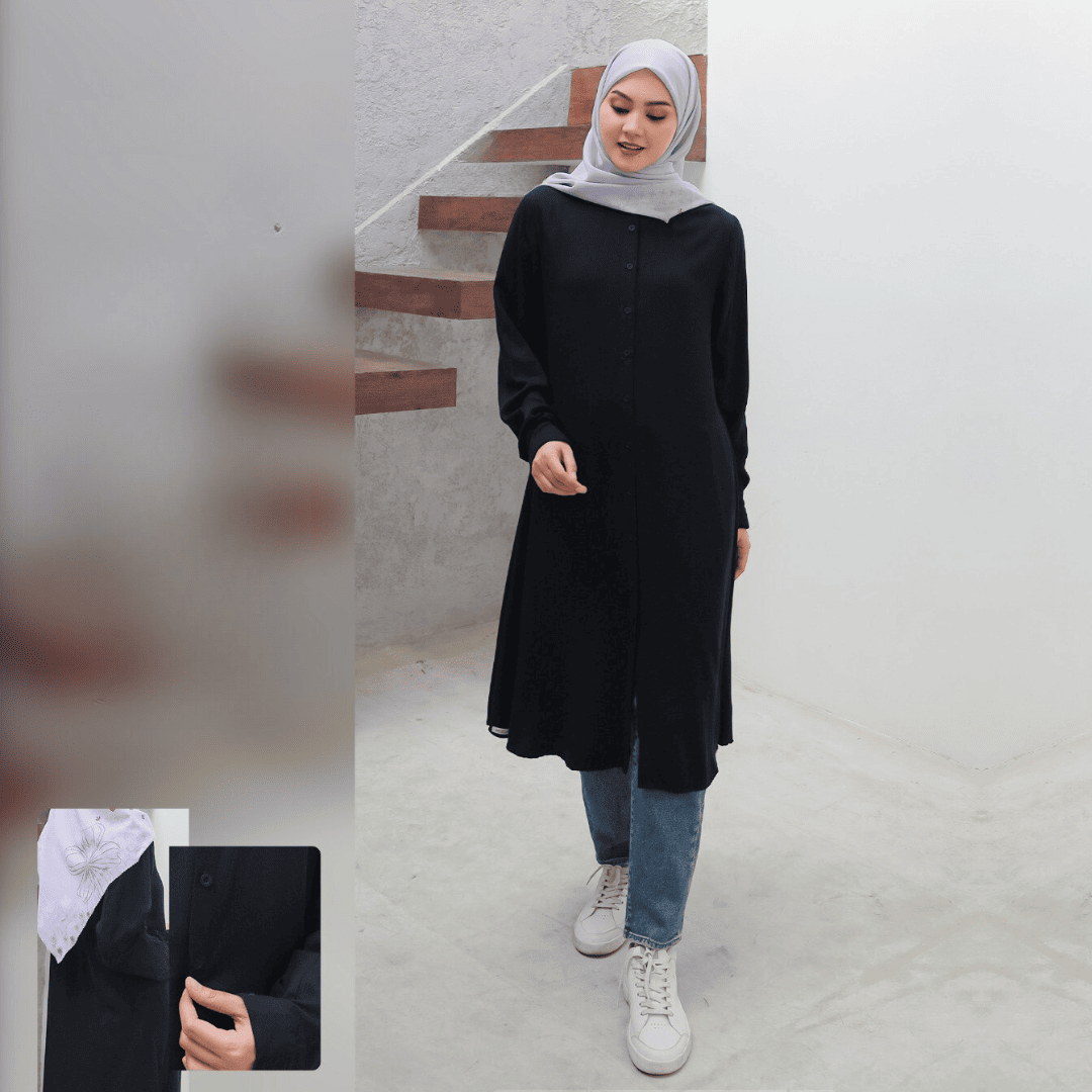 Detail : Terdapat Kancing di bagian depan (busuifriendly) dan ujung pergelangan tangan (wudhufriendly), aksen tali pita depan yang manis serta terdapat tali pinggang dibagian belakang.