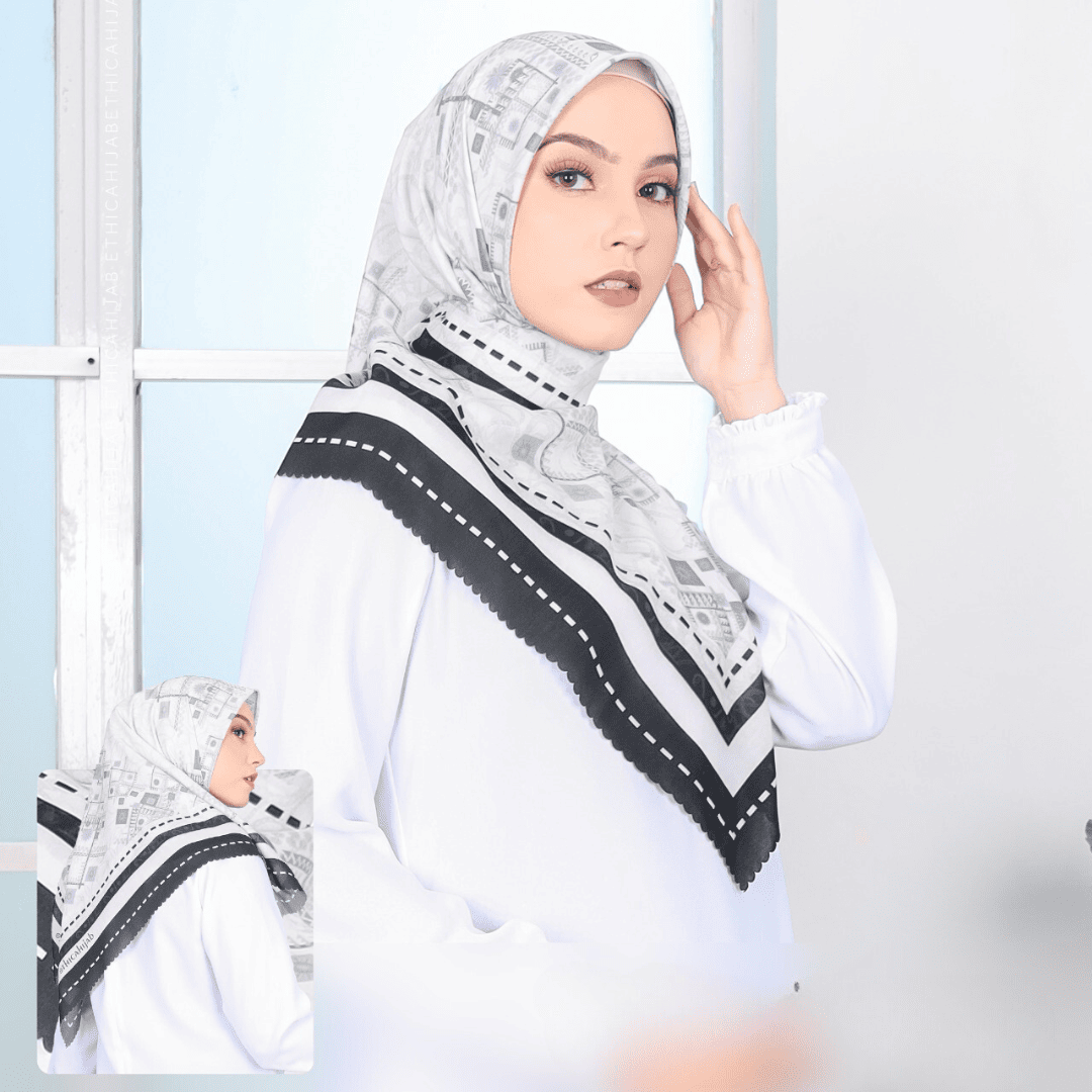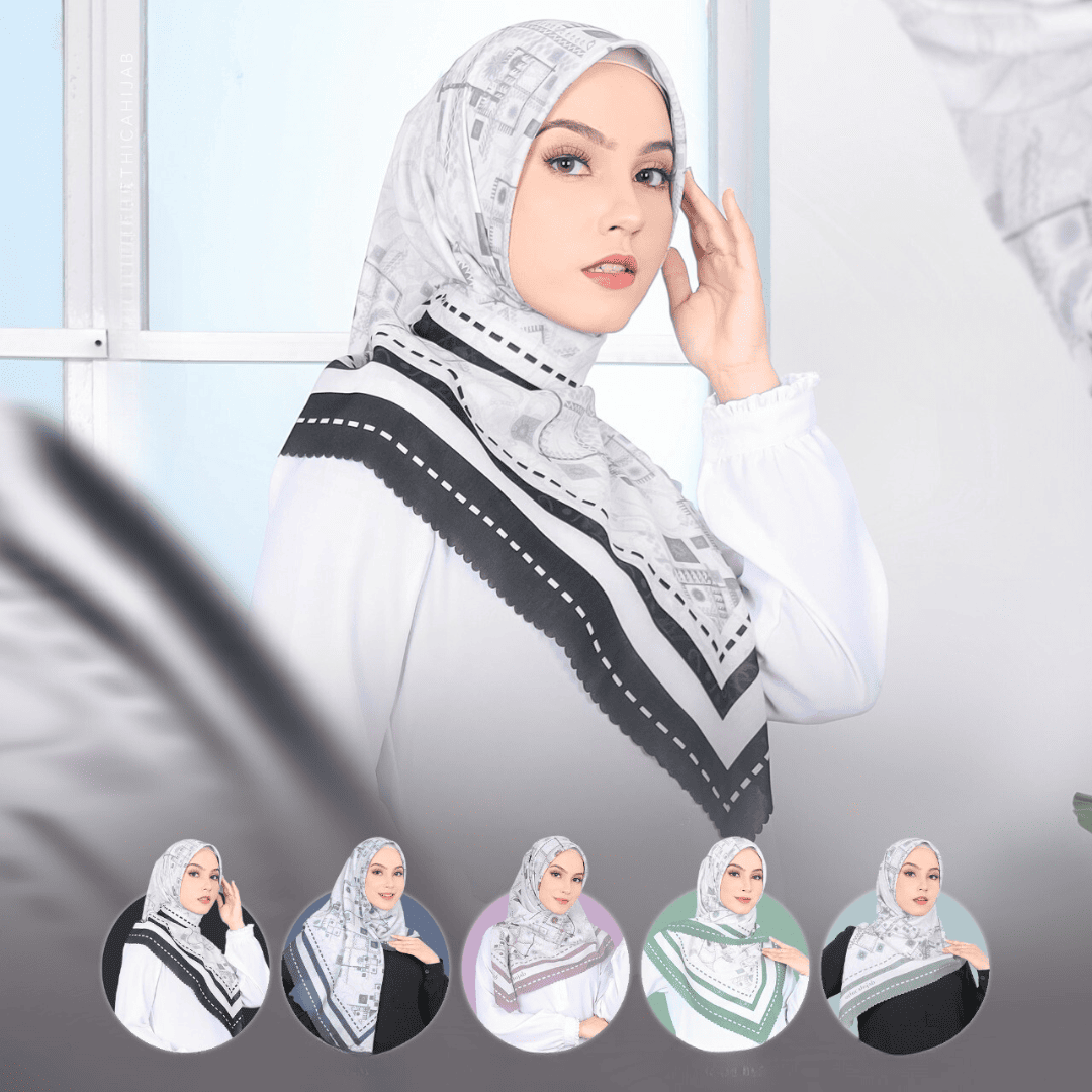 Hijab segiempat atau Hijab Square dari ethicahijab tersedia berbagai warna dan desain cantik nih